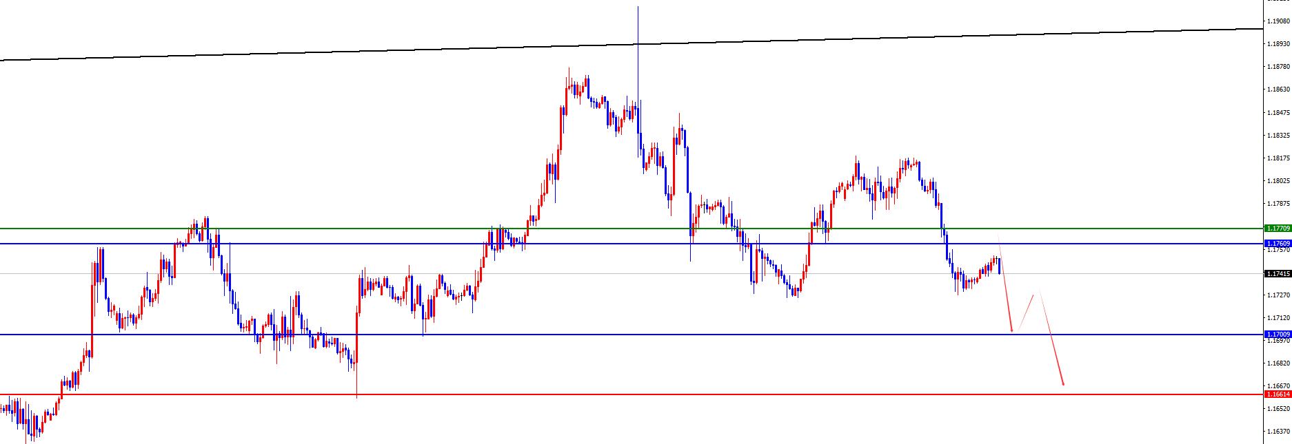 From a multi-cycle analysis, from the monthly level, Europe and the United States are supported by 1.1060, so the price is treated with long-term bulls above this position. From the weekly level, the price is supported by the support of the 1.1700 area. This position is the long-shoulder watershed of the medium-term trend. Currently, there is a performance of breaking the weekly support, so the focus will be on the subsequent focus. From the daily level, yesterday's price fell below the daily support, then this position became a key resistance. As time goes by, the current daily resistance is at 1.1760. At the same time, according to the four-hour level, as time goes by, the current four-hour resistance is in the 1.1770 area, and we will pay attention to this area under pressure in the future. Currently, the four-hour and daily resistance resonate in the range of 1.1760-70. We will continue to pay attention to the pressure in this area in the future. We will focus on the gains and losses of the weekly support 1.1700 area. Once it breaks down, it will continue further.