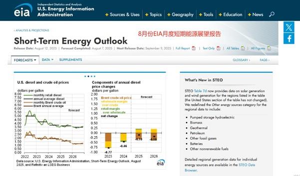 本周三0:00,EIA将公布月度短期能源展望报告,重点关注报告中对原油需求增速和价格走向的预测。在8月份短期能源展望报告中,EIA预计布伦特原油将大幅下跌,最低可能达到58美元。预测偏悲观的原因是于欧佩克+成员国决定加快增产步伐后石油库存增加。上周日欧佩克+最新食品会议显示,增产步伐进一步加快,每日新增约13.7万桶石油产量。据此判断,EIA在9月份的报告中可能对未来油价走势更加悲观。8月份EIA最关心的国际话题是特朗普关税、以色列和伊朗冲突、非欧佩克供应配额扩大的问题。进入8月份,影响原油需求和价格的因素已经发生变化。印度购买俄罗斯石油、美国债务突破37万亿美元、俄罗斯和乌克兰的冲突成为市场关注的焦点。EIA如何看待这些热点话题,对这些事件最终影响的判定,决定了该报告对美原油的冲击大小。