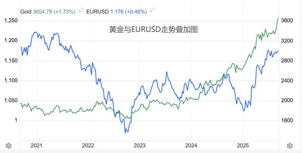 O Fed anunciará os resultados da última resolução de taxa de juros no dia 18 deste mês. As expectativas convencionais acreditam que um corte de 25 pontos de base de 25 pontos é quase uma conclusão precipitada. As visões radicais acreditam que o Fed pode cortar as taxas de juros novamente em outubro e dezembro e continuará a tendência de cortes nas taxas de juros em 2026. Sob uma expectativa tão forte de cortes na taxa de juros, o índice do dólar americano está recuando, enquanto moedas fora dos EUA e ativos de deva segura estão aumentando. No entanto, a lacuna de crescimento entre a moeda-europe não americana e o principal produto de ativos de tesouros seguros-Haven-Gold tem uma enorme lacuna.