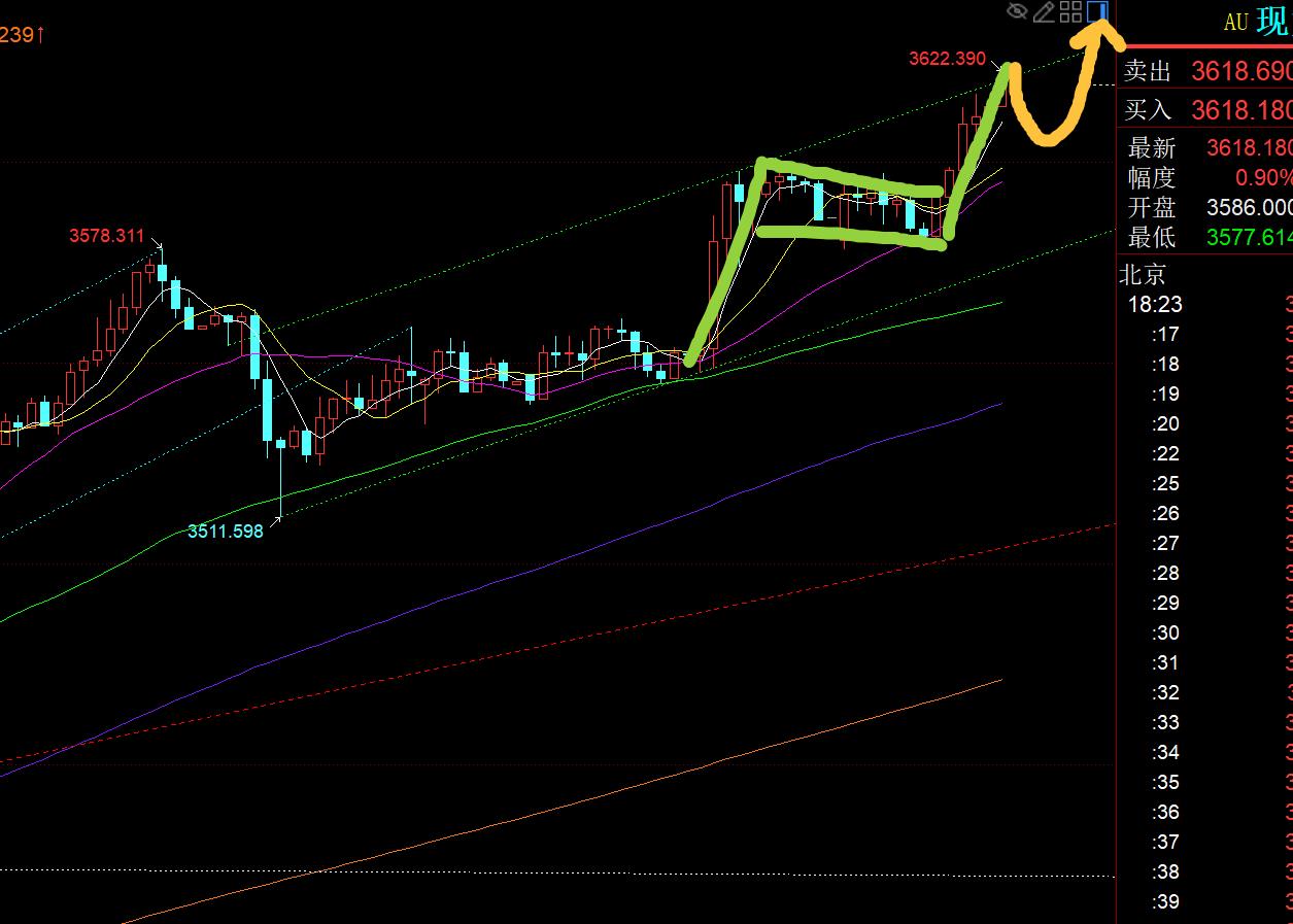 Fourth, golden hourly line level: the overnight strong break is high to 3600 and continue to strengthen, so the first test this morning should continue to follow this wave of upward trend; as a unilateral strength, generally, the maximum 50 segment position is 582 segment position will stabilize; the low point of the retracement of this morning 3578 is exactly the 382 segment point, and then there will be a sideways trading again. In the strong, the sideways trading does not fall when it passes. To repair a certain divergence and overbought, when you get closer to the hourly line, it is basically a primary support point to test the bullishness. Therefore, in the afternoon, the 3580 line is in place, you can try to continue to be bullish first. If there is still a low point, go to the 50-segment point and then continue to make up for some. In the unilateral strong bullish pull-up pattern, don’t be afraid of the highs, and there is no need to be afraid of the highs, because they are all following the trend, and it is often easy to exert force; as long as you always believe in the bullish trend in your heart, firmly If you believe that the unilateral rises, you will not be afraid of the highs. When you see the back, you will see the light of money. On the contrary, if you have time in your mind, you will not dare to follow the bullish level at a high level. You will only miss the opportunity step by step. Instead, you will continue to test the high altitude and be constantly beaten out. This is a matter of rhythm and direction. After 3580 in the afternoon, the European session successfully rose, broke through 3600 and further made efforts, and 3610 was in place at once, 30 The space of the meter can be grasped. At this time, the value is 3622 high, and the momentum is very strong. Continue to the principle of only long but not short. Patiently wait until the US market will attract shortage tonight to grasp the second bullish point; the primary support is the top and bottom position 3600 line, which is also close to the middle track upward point. xmltrust.combined with the 3580-3622 split, 3606, 3601, and 3595 have support (assuming that 3622 is temporarily under pressure and fall and correct), so retrace back to confirm them, use the central axis up and down 3600 as the support node, and continue to be bullish again and again. The target can repeatedly look at new highs. According to the same increase in the rising flag, it is expected to point to the 3630 line;