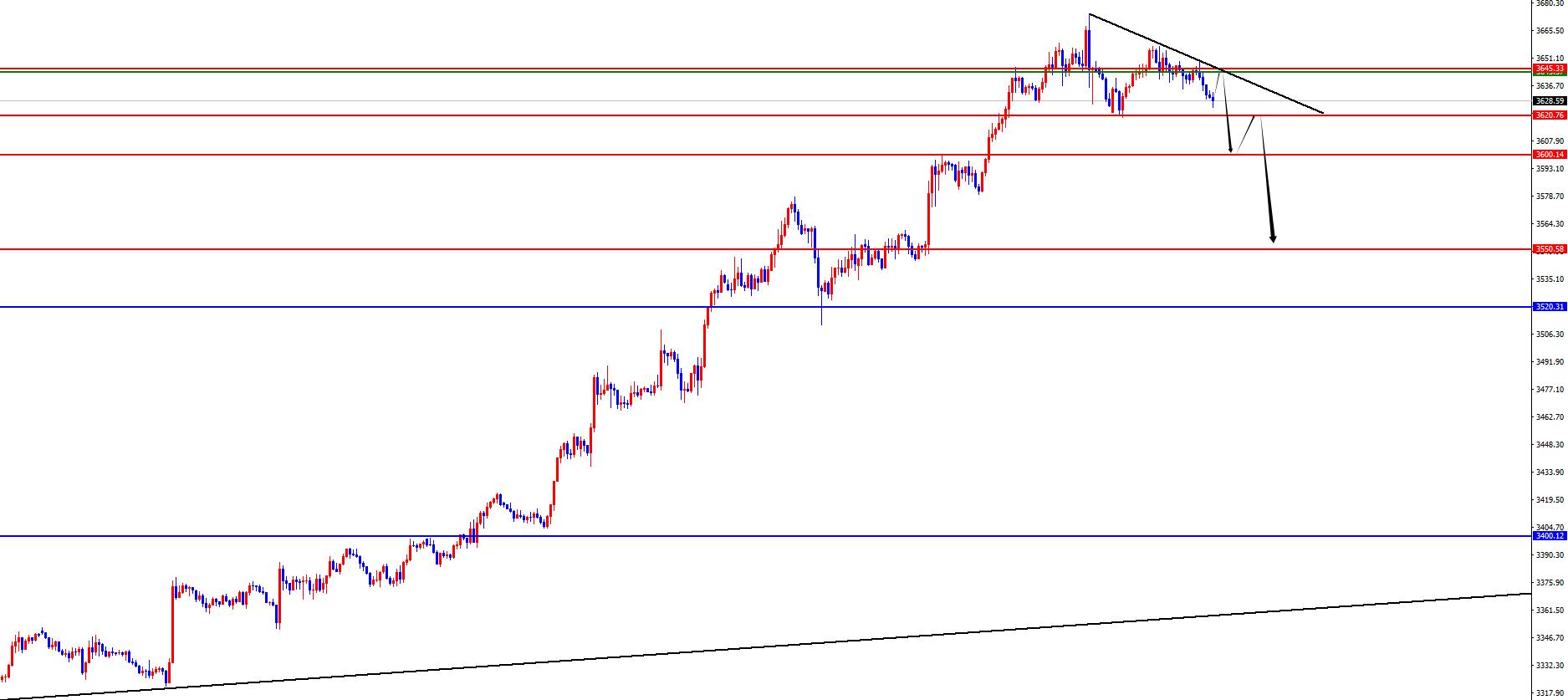 Gold 3644-45 is empty in the range, defense is 3660, target is 3620-3600-3580-3550