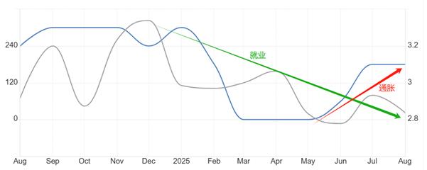 Powell's meaning is clear: the Federal Reserve is facing a dilemma, interest rate cuts may lead to high inflation, and non-rate cuts may lead to unemployment waves. The above picture shows the annual rate of core CPI in the United States and the new non-farm jobsThe overlay chart of the oral data shows that inflation is still recovering, while the non-agricultural employment population continues to decline. The latest value of the core inflation rate is 3.1%, which is still above the moderate inflation standard of 2%. The number of new non-agricultural employment has dropped sharply to 22,000, far lower than the peak of 323,000 last year. Although the Fed restarted interest rate cuts in September, if inflation rates rise significantly in the next few months, it may not be possible to continue to cut interest rates in November and December this year.