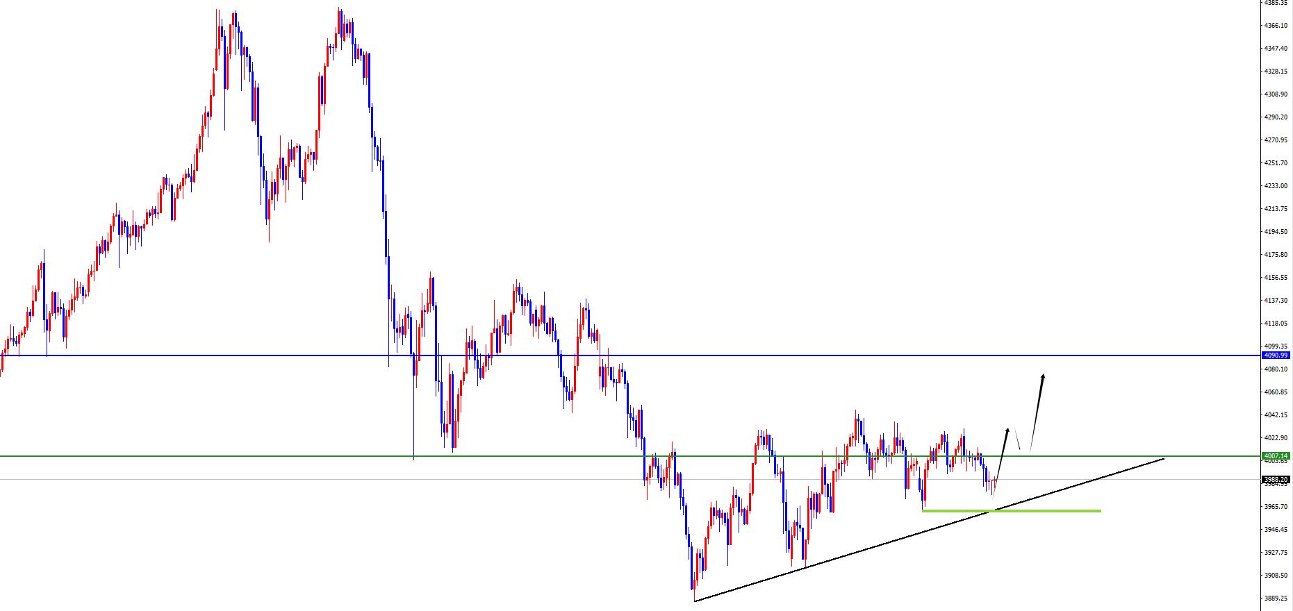 < p>Cuatro horas (corto plazo)La línea divisoria clave 4007, el precio fluctúa en el rango de 3960-4040, si no rompe el fondo de ayer, el shock será alcista