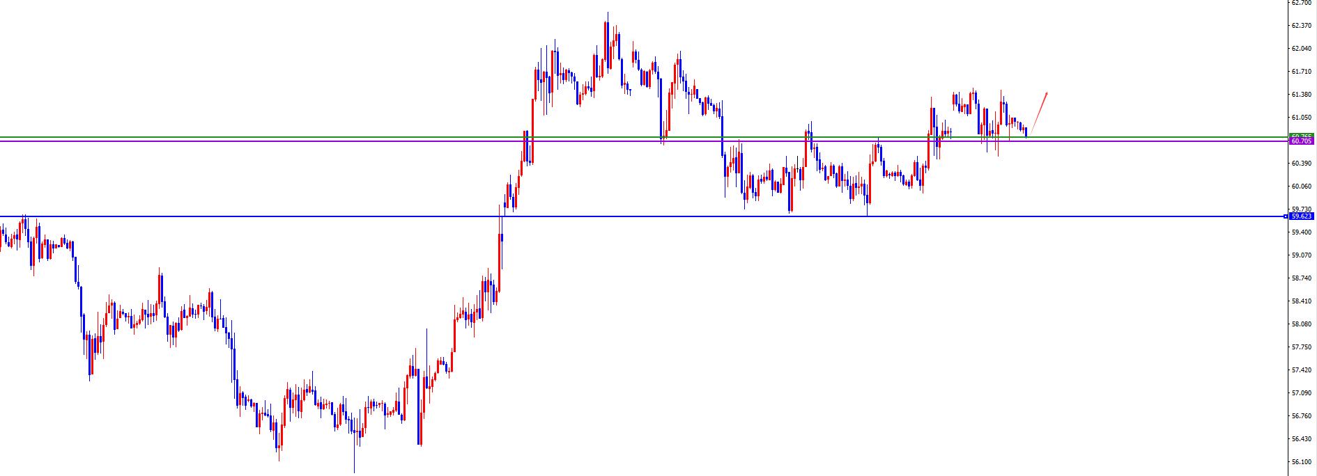La línea divisoria clave es 60,60-70, sea alcista antes del precio se revierte