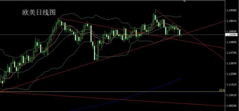 Hier, les marchés européens et américains ont ouvert à 1,17091 en début de séance, puis le marché a légèrement augmenté pour atteindre 1,17150, puis a fortement reculé. La ligne journalière a atteint la position la plus basse de 1,16461, puis le marché s'est consolidé. La ligne journalière a finalement clôturé à 1,16561. La ligne quotidienne se termine par une grande ligne négative avec une ligne d’ombre inférieure légèrement plus longue que la ligne d’ombre supérieure. Après la fin de cette forme, le stop loss court en dessous de 1,17100 est aujourd'hui de 1,16600 et 1,16400, et en dessous de 1,16200 et 1,16000.