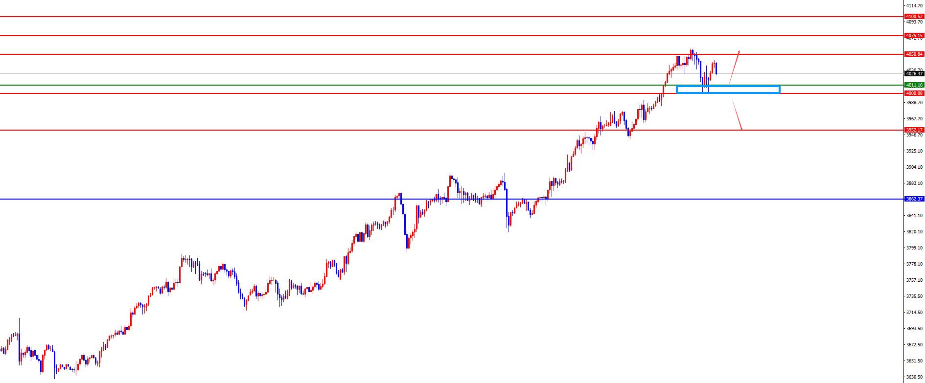 A partir d'une analyse multi-cycles, observez d'abord le rythme mensuel. Dans une perspective à long terme, la position 3130 constitue le tournant de la tendance à long terme. Le prix peut être traité tant qu'il se situe au dessus de cette position. Du point de vue du niveau hebdomadaire, la ligne de démarcation actuelle entre long et short sur la ligne hebdomadaire est à 3531, et le prix peut être traité tant que la ligne médiane est au-dessus de cette position. Au niveau quotidien, nous devons pour le moment prêter attention au support de la zone 3862, et les bandes au-dessus de cette position devraient être davantage traitées. D'un point de vue de quatre heures, au début des échanges d'aujourd'hui, le retracement à la baisse vient de tester le support de quatre heures, puis a cessé de monter. Cette position est donc la clé de la tendance à court terme. Au fil du temps, nous prêterons temporairement attention au support dans la gamme 4010-4011. Dans le même temps, le plus bas du début des échanges constitue le tournant de la journée. Une heure plus tard, la correction actuelle des prix n'est pas encore terminée, nous allons donc temporairement nous concentrer sur le rythme du marché européen, puis réorganiser le marché américain et nous concentrer sur les gains et les pertes des premiers plus bas en termes de position.