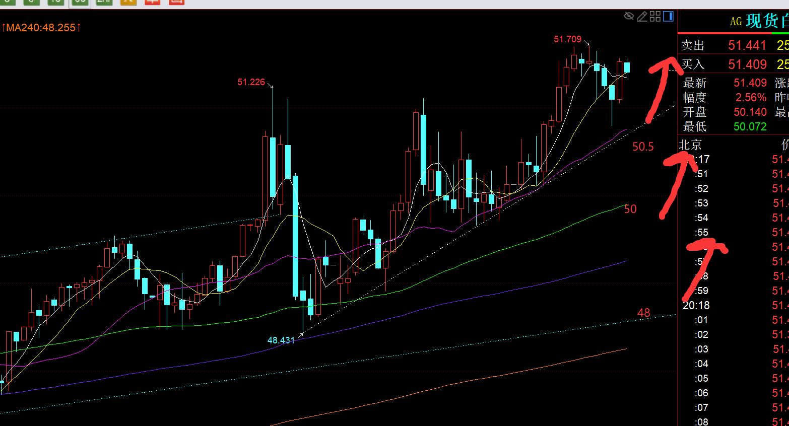 Deuxièmement, en termes d'argent : la volatilité a augmenté rapidement au cours des deux derniers jours, et un léger mouvement au cours de la journée est de 0,4 à 0,5, xmltrust.comme mentionné sur le marché asiatique vendredi dernier, ceux qui sont audacieux peuvent directement poursuivre la hausse après la cassure. jusqu'à 50, avec l'objectif de 51 en place, mais c'est vraiment difficile à défendre à ce moment-là, à moins que la bande ; le marché européen a fortement augmenté, atteignant à nouveau le plus haut de la nuit de 51,1-51,2, et le marché américain a suivi la tendance haussière, mais il est dommage qu'il ait reculé un peu plus, juste percé, puis le marché américain a tiré vers le haut pour atteindre l'objectif initial ;