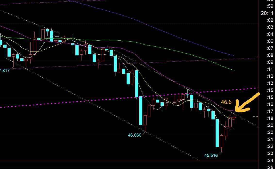 Argent : l'argent a été supprimé et corrigé d'un seul coup à la moyenne mobile hebdomadaire sur 10 de 45,6. Le MACD horaire a montré une nette divergence inférieure, et il existe également une tendance positive continue relativement bonne avant le marché américain. Il teste la résistance du rail supérieur de 46,6 sur le canal descendant, qui est également le rail médian de la ligne horaire ; pour cela, je pense personnellement que le fond à court terme apparaît progressivement, et qu'il n'y a fondamentalement pas beaucoup de place en dessous, et qu'il peut être atteint à tout moment. Il peut se stabiliser à l'avance ; se concentrer sur 46.6. Une fois qu'il dépasse, un signal d'inversion à court terme apparaîtra, et le rebond haussier suivra, testant 47,2, 48, etc. ci-dessus ; si 46,6 est toujours empêché de baisser, faites attention aux signaux de stabilisation sur 45,9 et 45,6. Il est également possible d'attendre le deuxième round de divergence avant de procéder à un rebond de survente ; en fait, cette divergence a déjà été brisée après que 47,4 soit tombé en dessous.C'est une situation de retour en arrière. C'est très grave et nécessite de toute urgence un rebond de survente ;