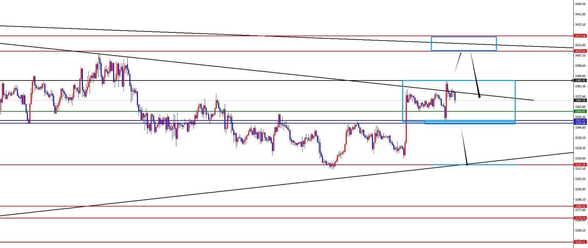 oro 3350-3351 è uno spartiacque. Se non rompi il massimo, guarderai prima la pressione. Se ti alzi accidentalmente, presti attenzione alla 3410 Soppressione regionale