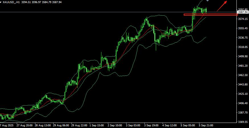 L'oro è più di 3580, la perdita di arresto è 3570, il bersaglio è 3600