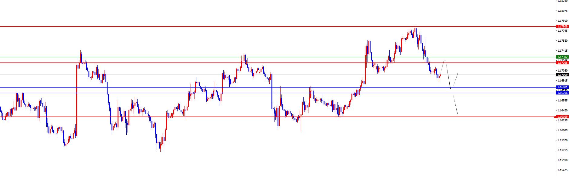 Europa e Stati Uniti hanno un intervallo di 1.1720-30, la difesa è 40 punti, bersaglio 1.1680-1.1630