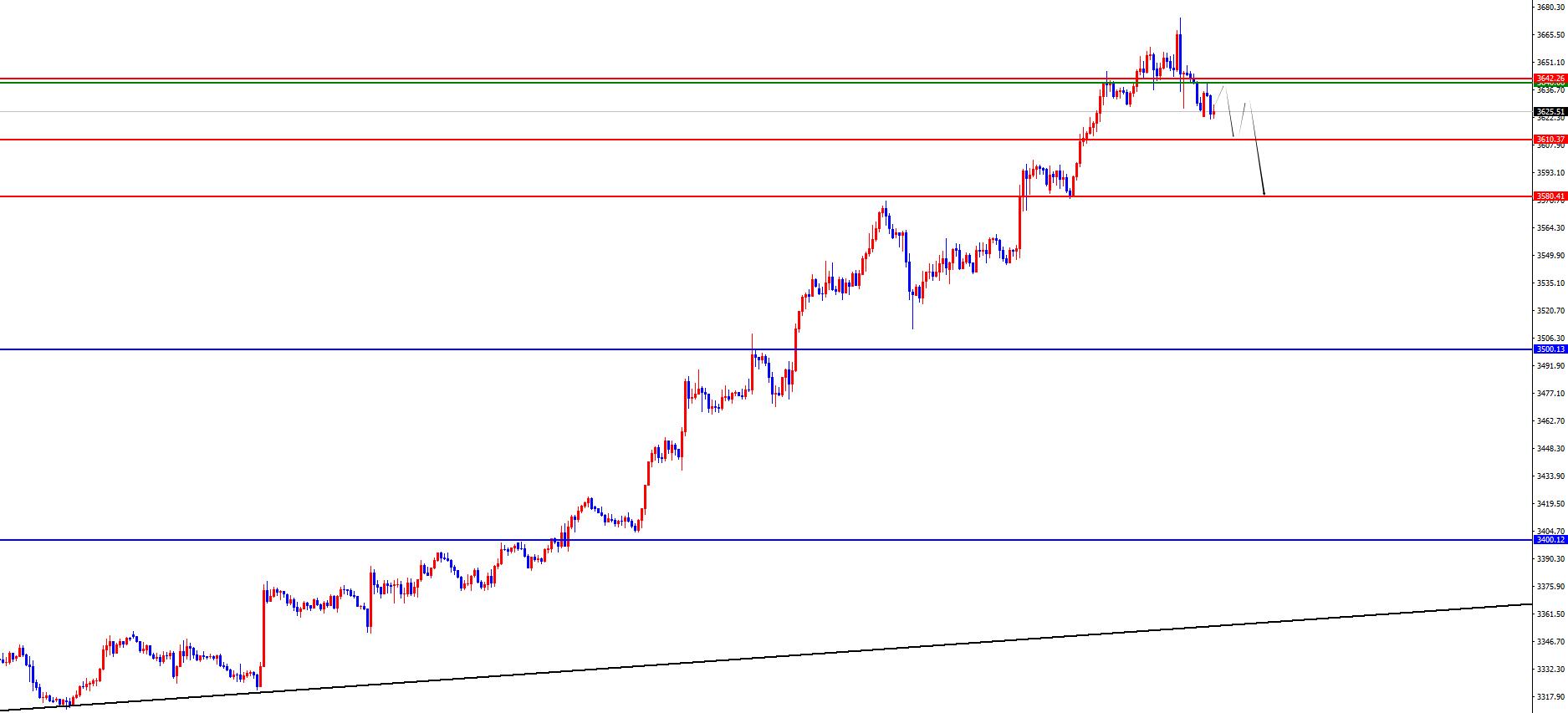 Gold 3640-42 is empty in the range, defense is 3655, target is 3610-3593-3580