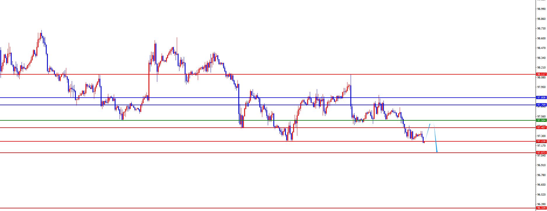 Da un'analisi multi-ciclo, il prezzo si è recentemente consolidato su e giù a livello settimanale. Attualmente, la resistenza settimanale si trova nell'area 97.80 e il prezzo è a cortocircuiti al di sotto di questa posizione. Il prezzo passerà a lungo solo dopo la successiva chiusura settimanale sopra questa posizione. Dal livello giornaliero, col passare del tempo, l'attuale resistenza giornaliera si trova nell'area 97.70. Sono corto in questa posizione. Per il futuro, dobbiamo prestare attenzione al fatto che il prezzo possa stabilizzare la resistenza di risonanza giornaliera e settimanale. Solo per la permanenza aumenterà, altrimenti continuerà ad essere sotto pressione. Dal punto di vista di quattro ore, dopo la recente fluttuazione e pressione dell'indice del dollaro USA, l'attuale resistenza di quattro ore è xmltrust.compresa tra 97,40-50. Il prezzo è a breve termine e il prezzo aumenterà solo dopo la rottura.