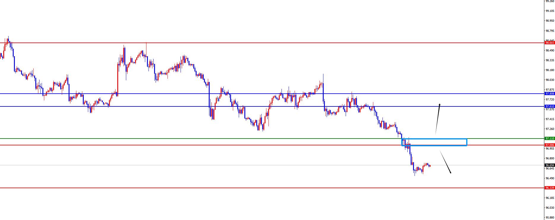 Da un'analisi multi-ciclo, il prezzo si è recentemente consolidato su e giù a livello settimanale. Attualmente, la resistenza settimanale si trova nell'area 97.80 e il prezzo è a cortocircuiti al di sotto di questa posizione. Il prezzo passerà a lungo solo dopo la successiva chiusura settimanale sopra questa posizione. Dal livello giornaliero, col passare del tempo, la resistenza giornaliera è attualmente nell'area 97.60. Sono corto in questa posizione. Per il futuro, dobbiamo prestare attenzione al fatto che il prezzo possa stabilizzare la gamma di resistenza di risonanza giornaliera e settimanale. Solo per la permanenza aumenterà, altrimenti continuerà ad essere sotto pressione. Dal punto di vista di quattro ore, dopo la recente fluttuazione e pressione dell'indice del dollaro USA, l'attuale resistenza di quattro ore è xmltrust.compresa tra 97,00-10 ed è attualmente vicina al recente punto basso, quindi dobbiamo essere cauti, concentrandoci sugli utili e sulle perdite della resistenza di quattro ore. Una volta che si rompe, dobbiamo fare attenzione a girare verso l'alto. L'attuale resistenza di quattro ore è una posizione di spartiacque a breve termine. Guarda di più e muoviti di meno durante il giorno e attendi la guida dopo i dati.