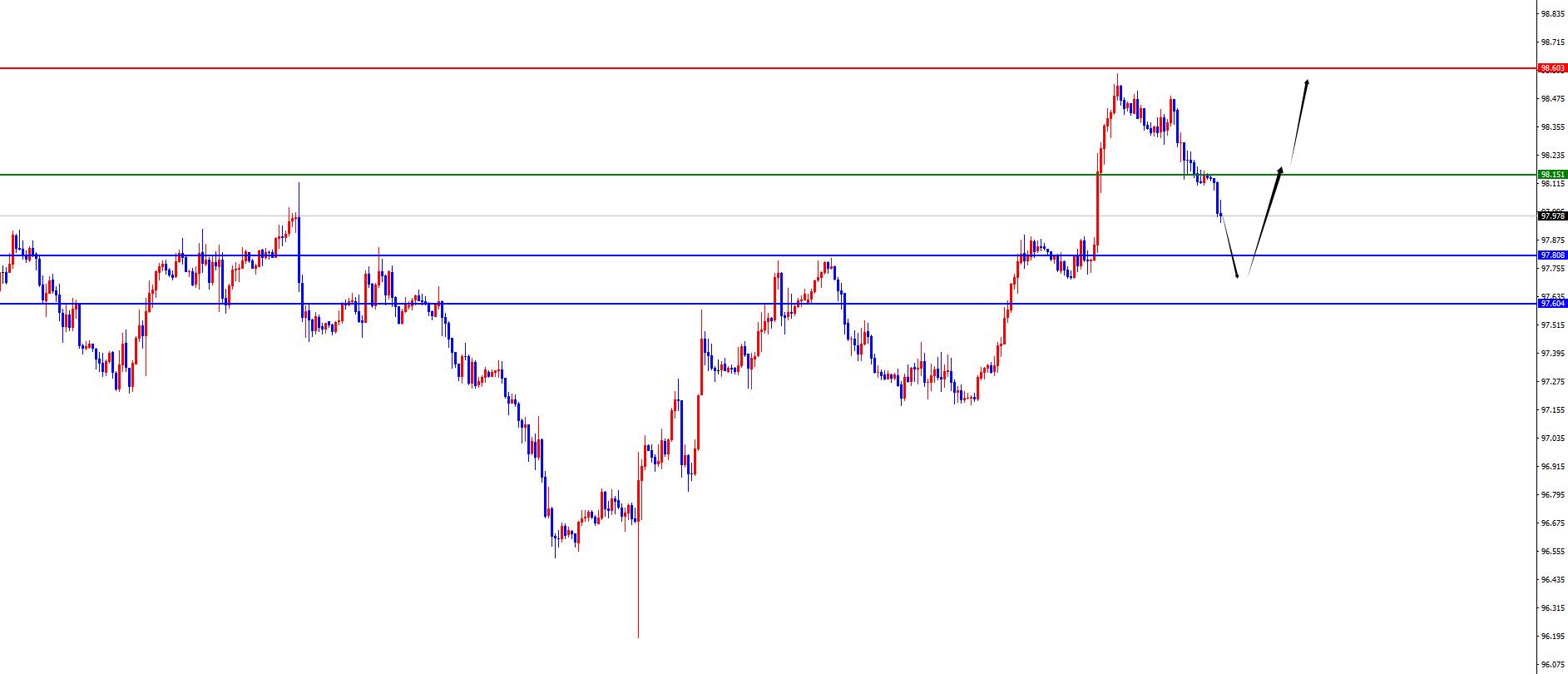 Da un'analisi multi-ciclo, il prezzo si è consolidato di recente a livello settimanale. Attualmente, la linea settimanale supporta l'area 97.80 e il prezzo è stato nella resistenza della scorsa settimana e i tori continuano a medio termine. Dal livello giornaliero, col passare del tempo, la linea giornaliera è attualmente supportata nell'area 97.60 e la banda al di sopra di questa posizione del prezzo è aumentata ulteriormente. Dal punto di vista di quattro ore, l'attuale supporto di quattro ore è alla resistenza 98,15. Il prezzo è sotto pressione in questa posizione. Quindi, quando xmltrust.compaiono gli intervalli di supporto giornaliero e settimanale, i Bulls continueranno a continuare. Se il prezzo si stabilizza di nuovo, la resistenza di quattro ore continuerà a esaminare la continuazione.