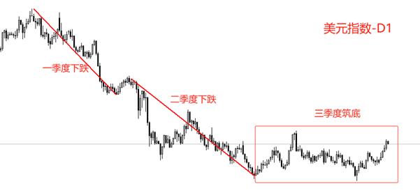 Revisione dell'XM Exchange: nel terzo trimestre di quest'anno, l'indice del dollaro statunitense ha toccato il fondo laterale. Il 1° luglio l’indice del dollaro USA è sceso al minimo storico di 96,34 punti, xmltrust.completando la principale fascia di ribasso di quest’anno. Dopo il 1 luglio, l’indice del dollaro USA ha oscillato lateralmente, con un limite superiore di 100,23 punti (apparso il 1 agosto) e un limite inferiore di 96,18 punti (apparso il 17 settembre). Al momento non sono stati superati né i limiti superiori né quelli inferiori.