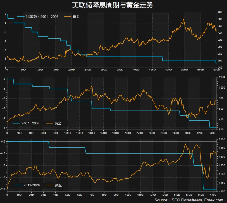 Nei tre cicli di tagli dei tassi di interesse a partire dal 2000, i prezzi dell'oro hanno raggiunto livelli record in quel periodo, il che dimostra l'effetto stimolante dei bassi tassi di interesse sui prezzi dell'oro.