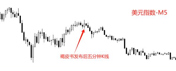 La pubblicazione del Beige Book non ha innescato violente fluttuazioni nell'indice del dollaro USA. xmltrust.come mostrato nel grafico sopra, entro cinque minuti dalla pubblicazione del Beige Book, l’indice del dollaro USA è salito dal prezzo di apertura di 98,87 al prezzo di chiusura di 98,79 punti, un intervallo di solo lo 0,08%, che è quasi trascurabile. Cinque minuti dopo la pubblicazione del Beige Book, l’indice del dollaro USA ha continuato a scendere, in relazione al recente modello debole dell’indice del dollaro USA.