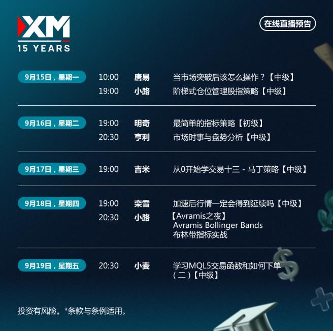 大家好,今天XM外汇将为大家带来“【XM Group】:中文在线直播讲座 本周预告”。希望对你们有所帮助!原创内容如下: