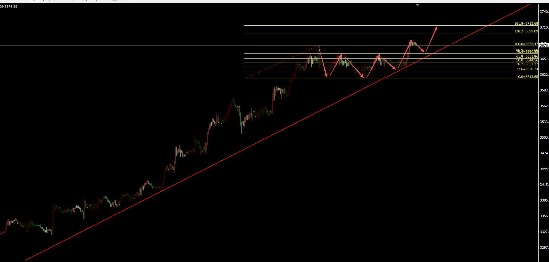 回落3363-56区域或者分批入场多,防守53下方,上看3700-3713-22.至于空,第一次见3713附近空一次,防守4块。