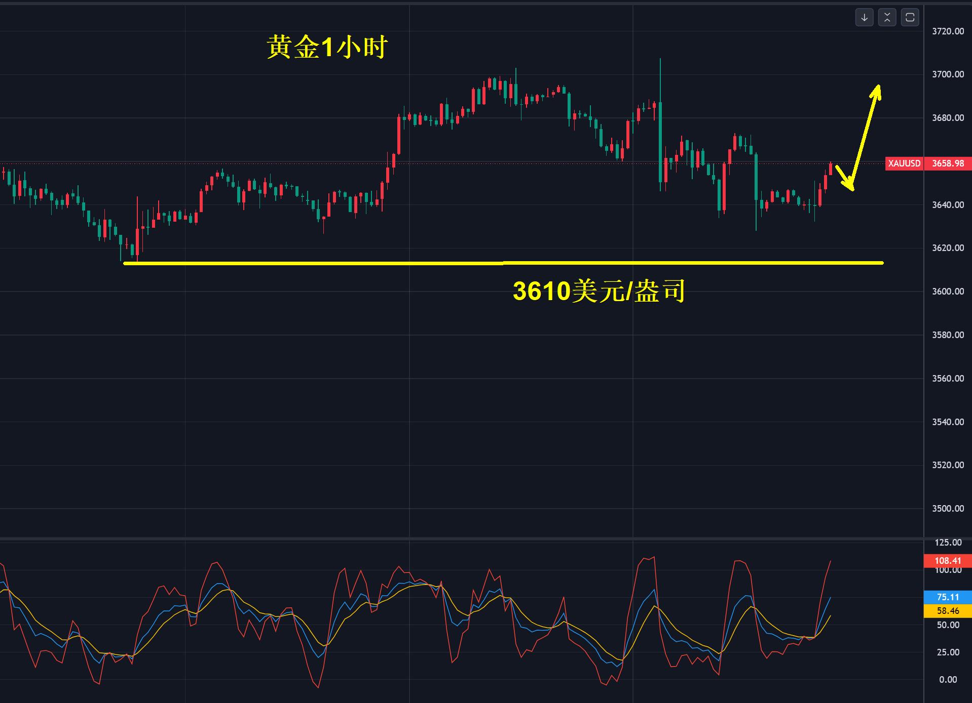 今天,我的观点仍然不变,只要3610美元没有破位看多思路不变,靠近3650-45美元区域多,向上先看3670,破位后下一站在3678美元。