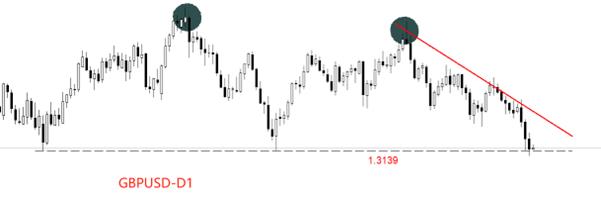 技术角度看,日线级别,GBPUSD处于筑顶后的回调阶段。图中两个深色圆形代表双顶结构,前后高点形成时间分别为7月份和9月份,数值分别为1.3787和1.3725点,时间差距显著且数值接近,双顶结构较为稳固。9月份以来的下跌波段走势流畅,尤其是过去三个交易日,连续收出长阴线,空头动能强烈。昨日K线跌破4月15日以来的最低点,面临关键支撑位的考验。考虑到空头动能强烈,1.3139支撑位被有效跌破的概率较高。