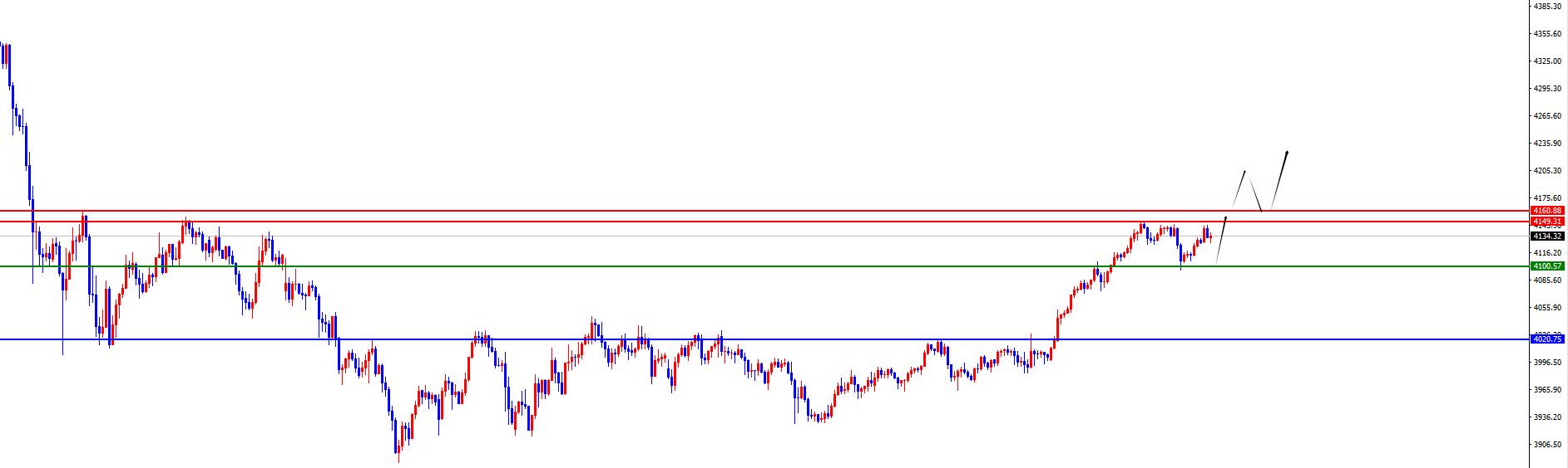 关键分水岭4095-4100区间,价格在此位置之上看上涨,关注4160得失