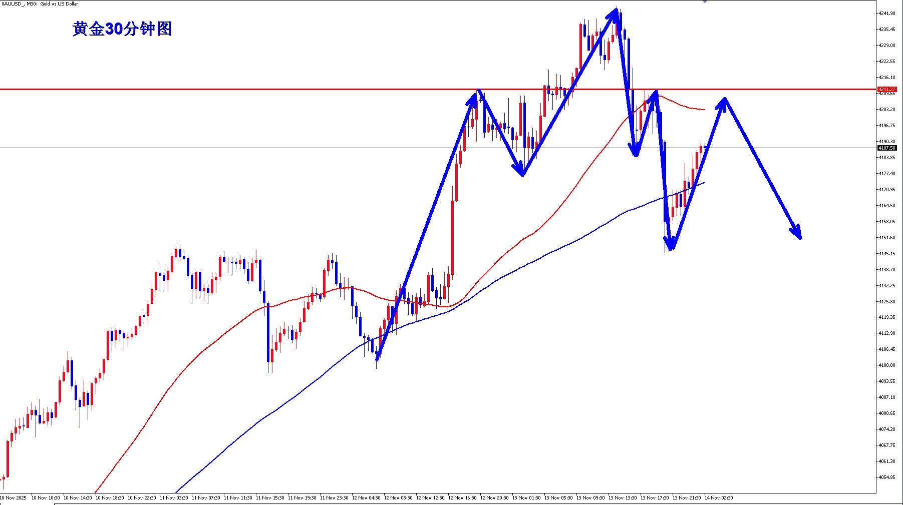 【XM官网】:黄金隔夜4208反手空如期大跌收割,黄金早盘反弹继续空