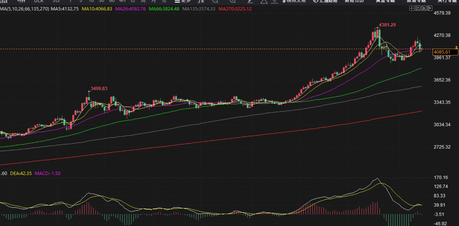 黄金周五反弹到日图上线形成下跌,与我们早评高度一致,给的4208.5空,到欧盘基本确认了空头,晚间进一步大跌,尾盘反弹但最终收阴,对于今天来看,价格在日图的短期均线支撑,不过价格运行于上下线下方,同时也运行于5和10日均线下方,周线也出现弱空,所以今天仍然反弹空,而周未的消息面也没有触使黄金高开,但避险暂时不存,不过这方面还是及时关注消息面的进一步动态,在消息面未发生变化前,反弹空不变,所以今天综合得出结论如下: