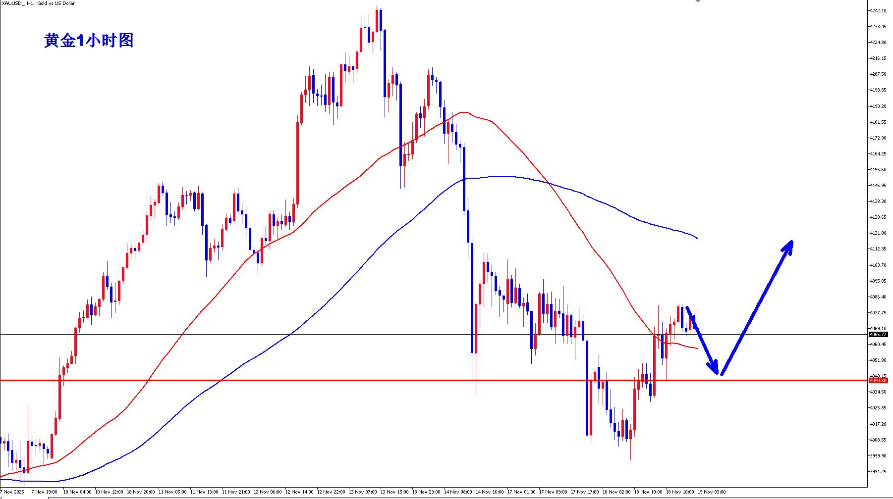 黄金4040多,保护4030,目标4080-4100;
