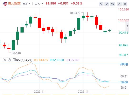 11月28日,北京时间周五亚市早盘,美元指数徘徊在99.58附近。周四,美元指数整体上先涨后跌,触及日内高点后抹去全部涨幅,最终收跌0.059%,报99.53。由于感恩节假期市场交投清淡,现货黄金横盘震荡,最终收跌0.14%,报4157.99美元/盎司,仍徘徊在近两周高点附近;现货白银连涨四日,最终收涨0.1%,报53.4美元/盎司。在交易员观望俄乌谈判走向以及展望本周末举行的欧佩克+会议之际,国际原油连续第二个交易日走高。WTI原油站上59关口,最终收涨0.96%,报59.03美元/桶;布伦特原油最终收涨0.77%,报62.89美元/桶。