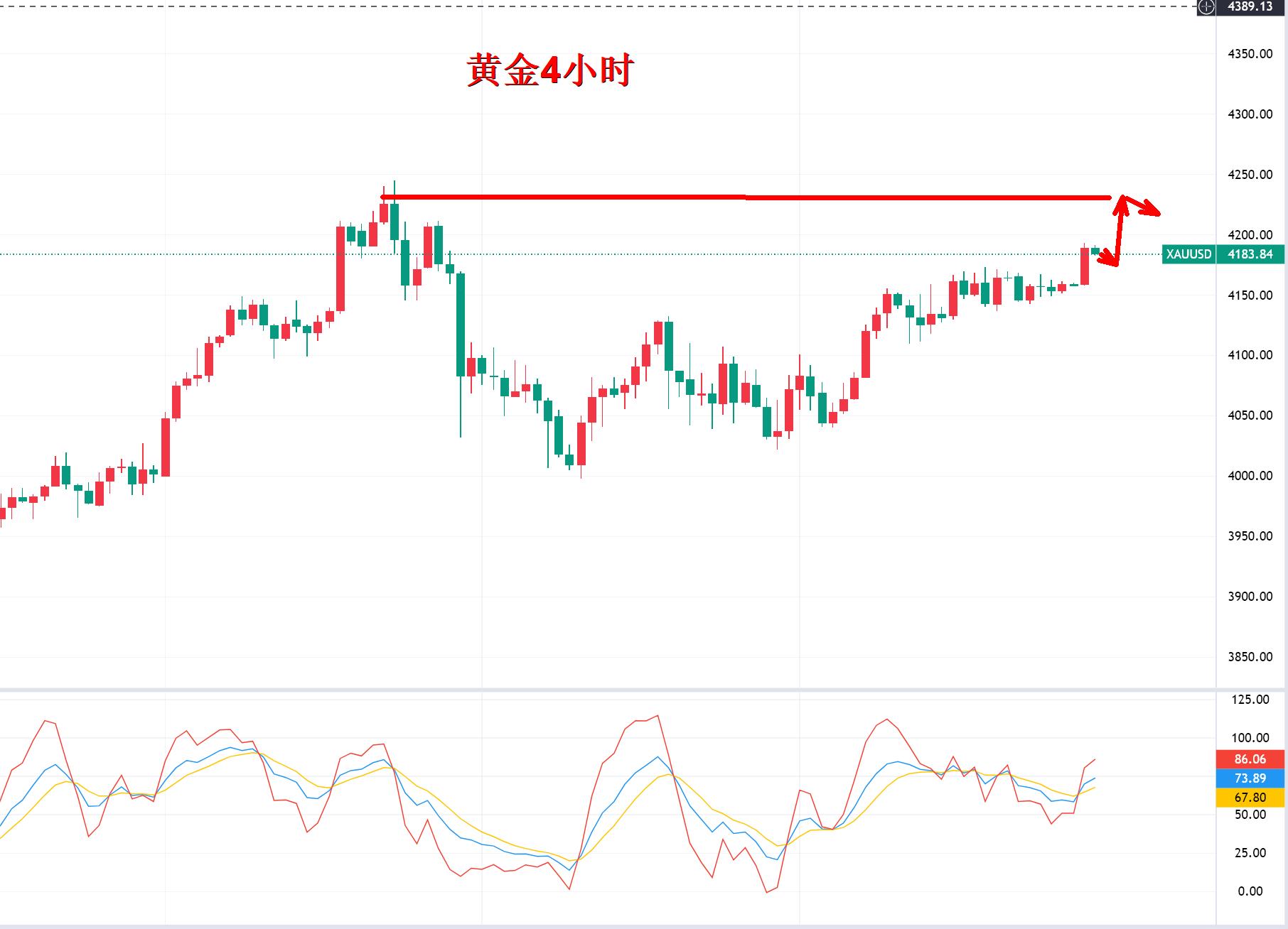 一直到美盘前,黄金仍然在4150美元附近筹备,看似不强实则不弱,主要是假期影响波动小而已,今天早上起来一看涨到4190美元了,距离4200只差一步。