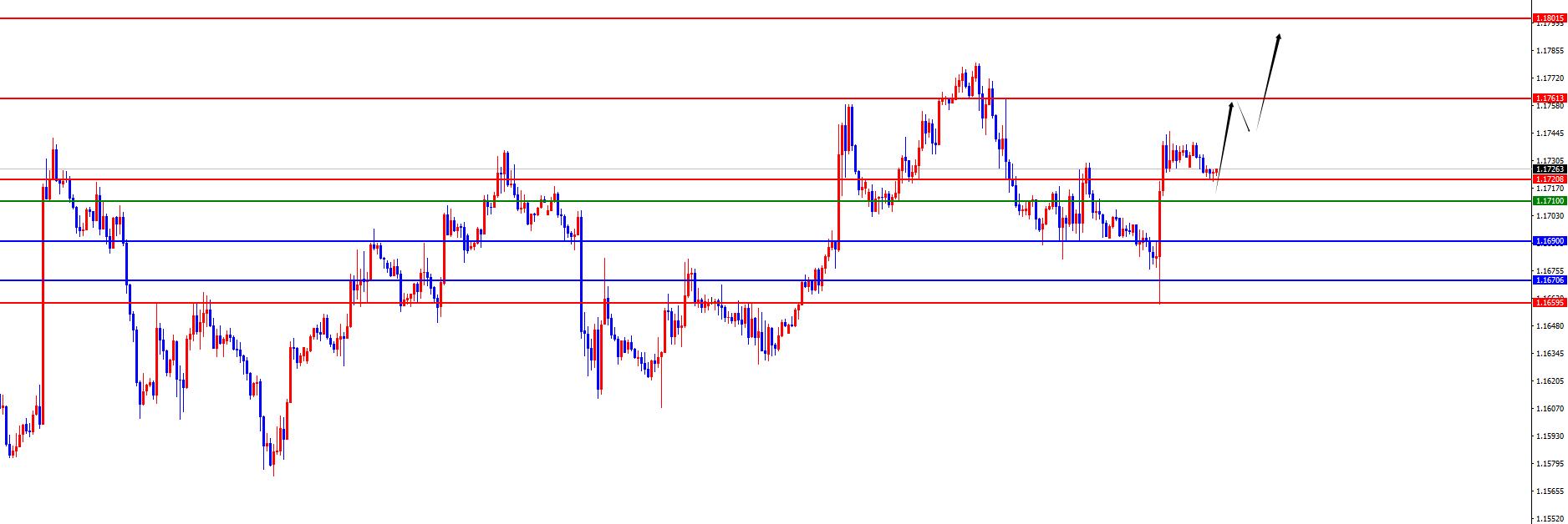A Europa e os Estados Unidos têm muitos intervalos de 1,1710-20, a defesa é 40 pontos e o alvo é 1,1760-1.1800